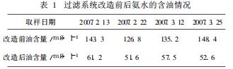 (2)蒸氨廢水是經(jīng)過(guò)過(guò)濾器和蒸氨塔處理后的廢水,水中的含油量相比氨水的少。過(guò)濾器后氨水含油在50~60mg/l之間,而蒸氨廢水含油正常在30mg/l。